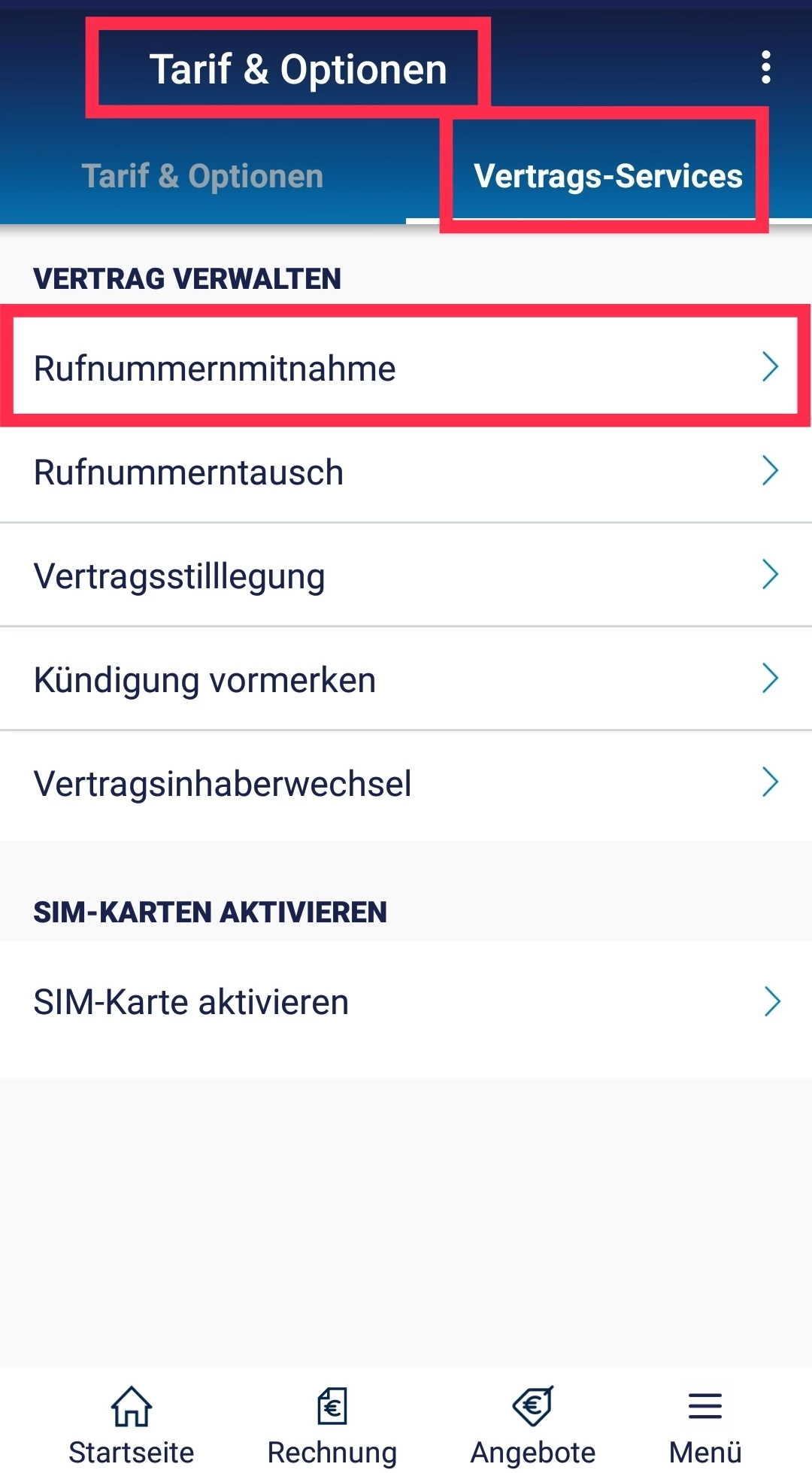 ​​​​​​Sobald du das Opt in gesetzt hast, kannst du in meino2 die Portierung beauftragen (Beispiel App)