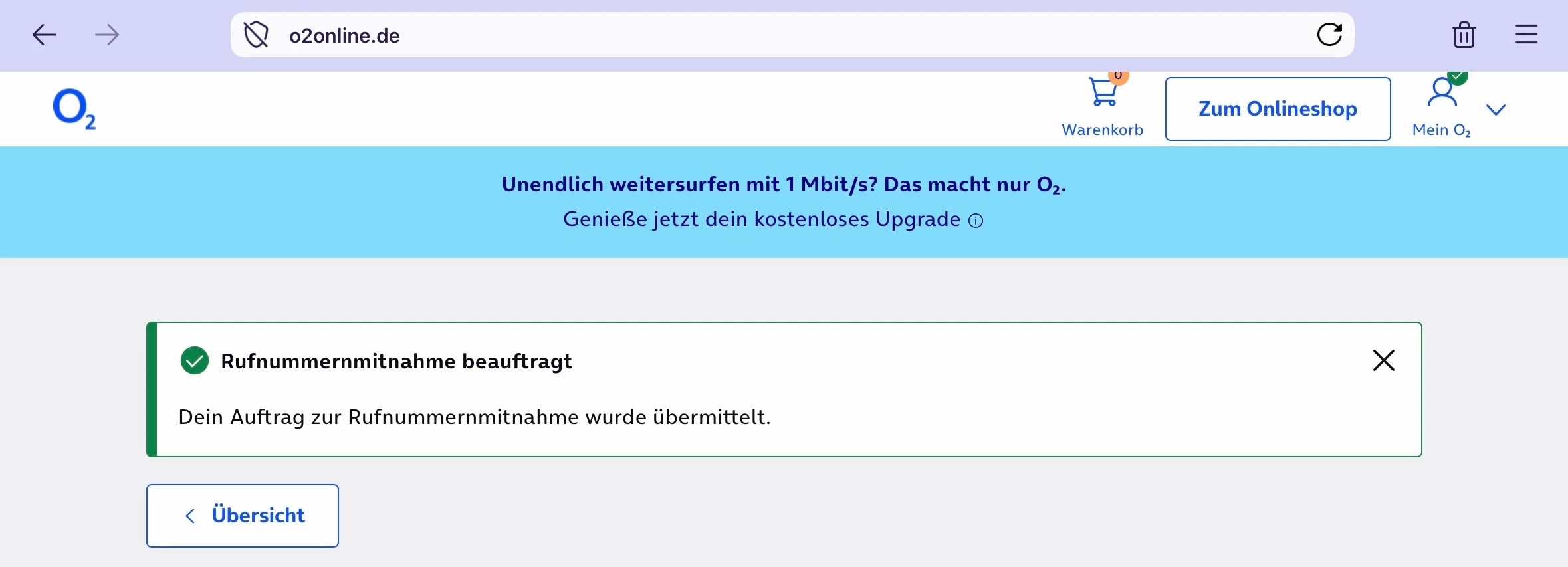 vielen Dank, dass du dich auf diesem Weg mit deiner Frage meldest. Herzlich willkommen in der o2 Community. Unsere Community ist weltweit öffentlich, deshalb habe ich deine Rufnummer entfernt. Bitte poste hier keine persönlichen Daten. Bist du mit der Rufnummer, die portiert werden soll, hier angemeldet? Wenn ja, ist im Kundenkonto noch kein Eingang des Formulars vermerkt. Um ganz sicher zu gehen bitte ich dich das Formular erneut einzureichen damit es bearbeitet werden kann.