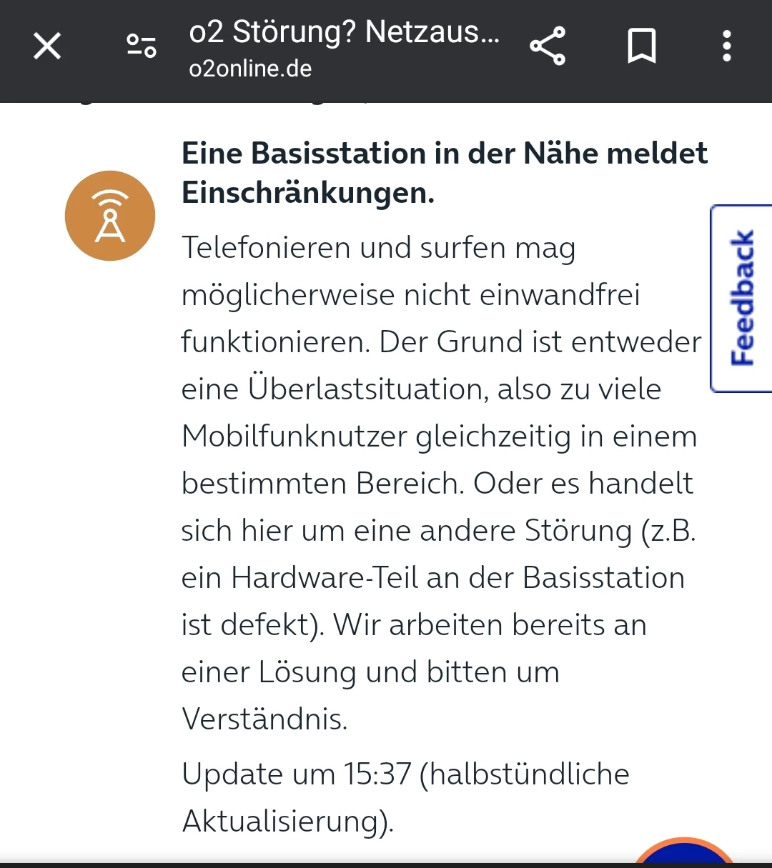 Es liegt eine Überlastsituation im 4G Netz an der Adresse vor.