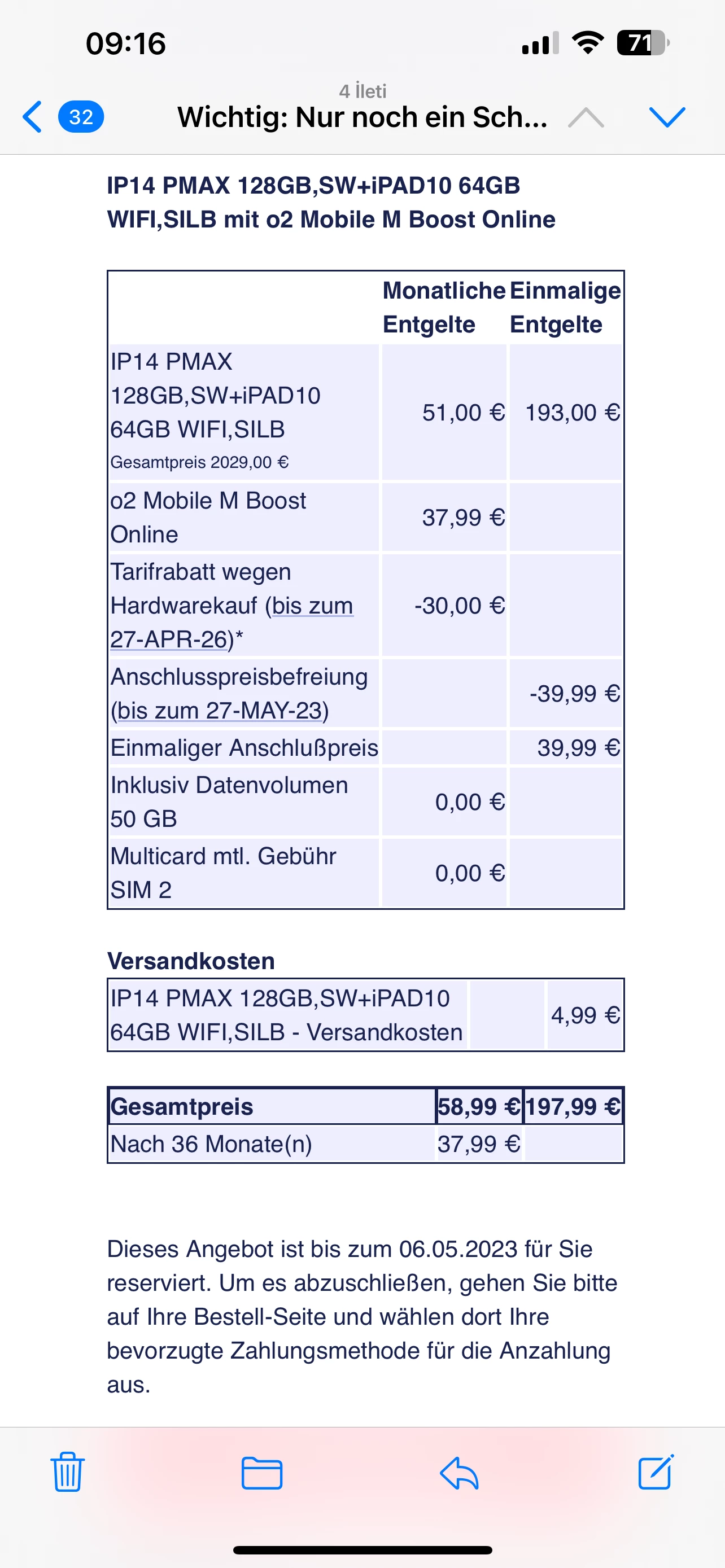 Ich habe bei iphone 14 pro max und ipad 10 Aktion bestellt, weder meine Sim Karte noch meine Geräte kamen am 28.04.2023 bei mir an