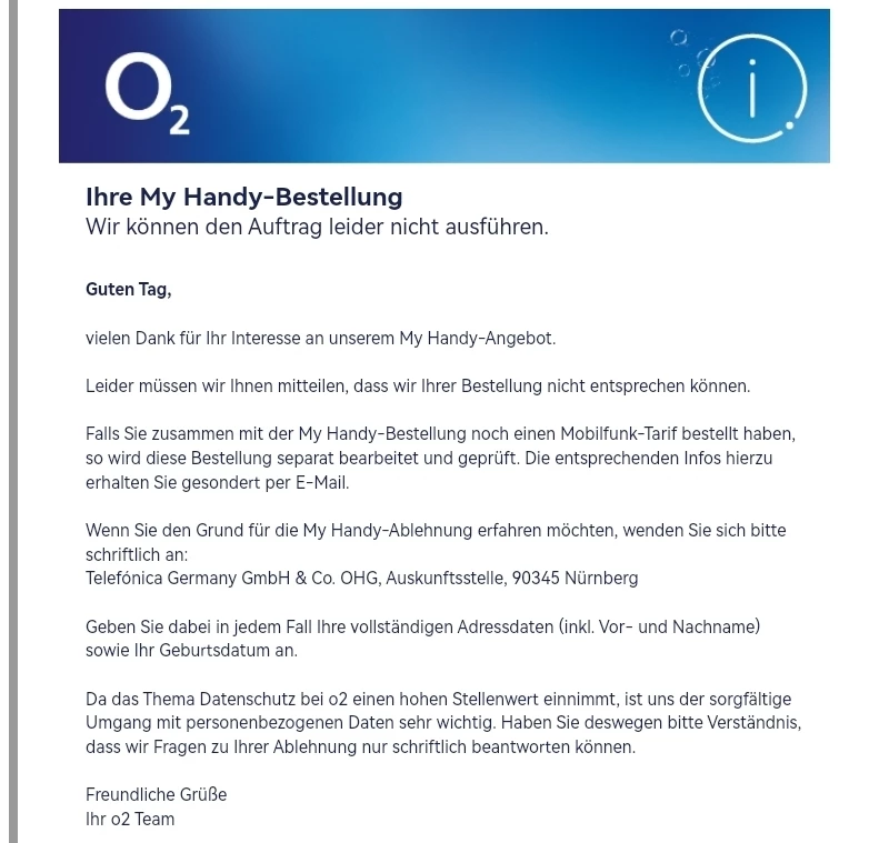 Lediglich der Kauf wurde abgelehnt. Wenn du magst, melde dich bei den Kollegen, vielleicht haben sie eine Alternative für dich Kontakt aufnehmen und Hilfe finden | o2 (o2online.de)