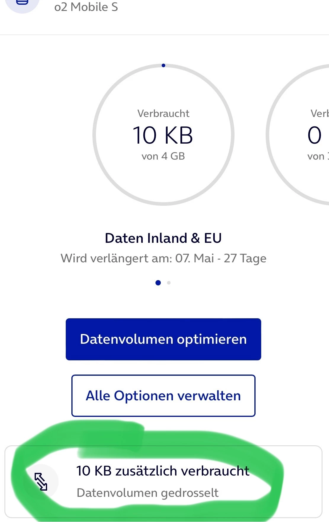 Guten Morgen, gestern habe ich meine Partnerkarte auf 4GB+ (Mobile S) Tarif umstellen lassen. Heute sieht meine Datenvolumen/Verbrauchsanzeige so aus: