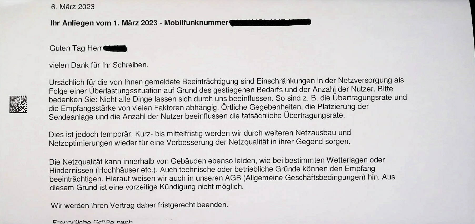 Wenn eine Netzstörung besteht, und dies über einen längeren Zeitraum, solltest du das dokumentieren, die Einschränkungen melden (etwa über den Livecheck), und deine Dokumentation an die Kundenbetreuung senden.
