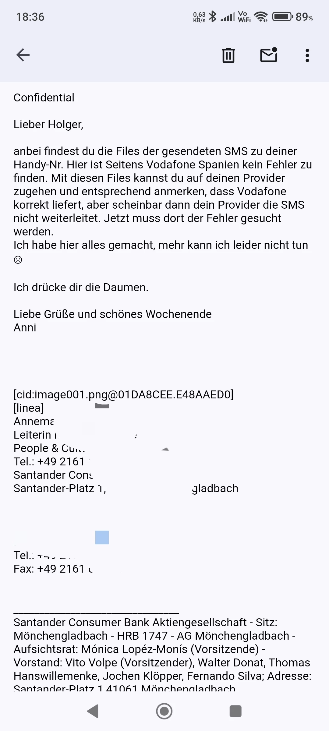Die IT der Bank hat die SMS verifiziert, dass diese zu den genannten Zeitpunkten meiner Logins versendet wurde. (Santander)