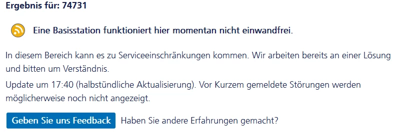 seit Januar 22 haben wir in 74731 keinen mobilen Empfang mehr. Wie lange dauert die Beseitigung der Störung noch?