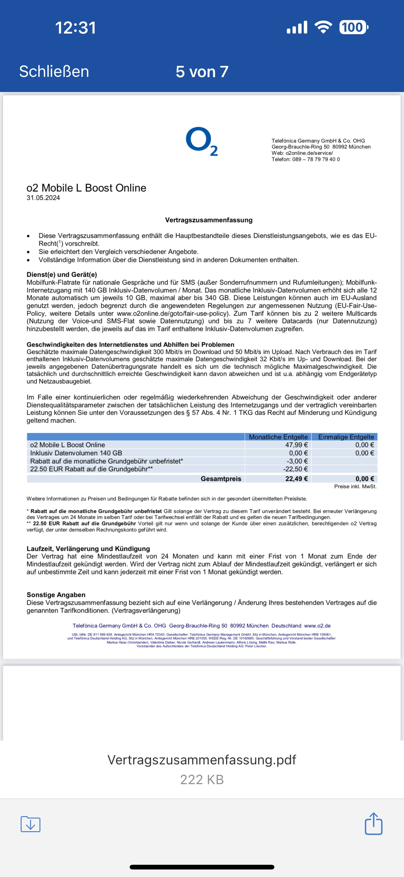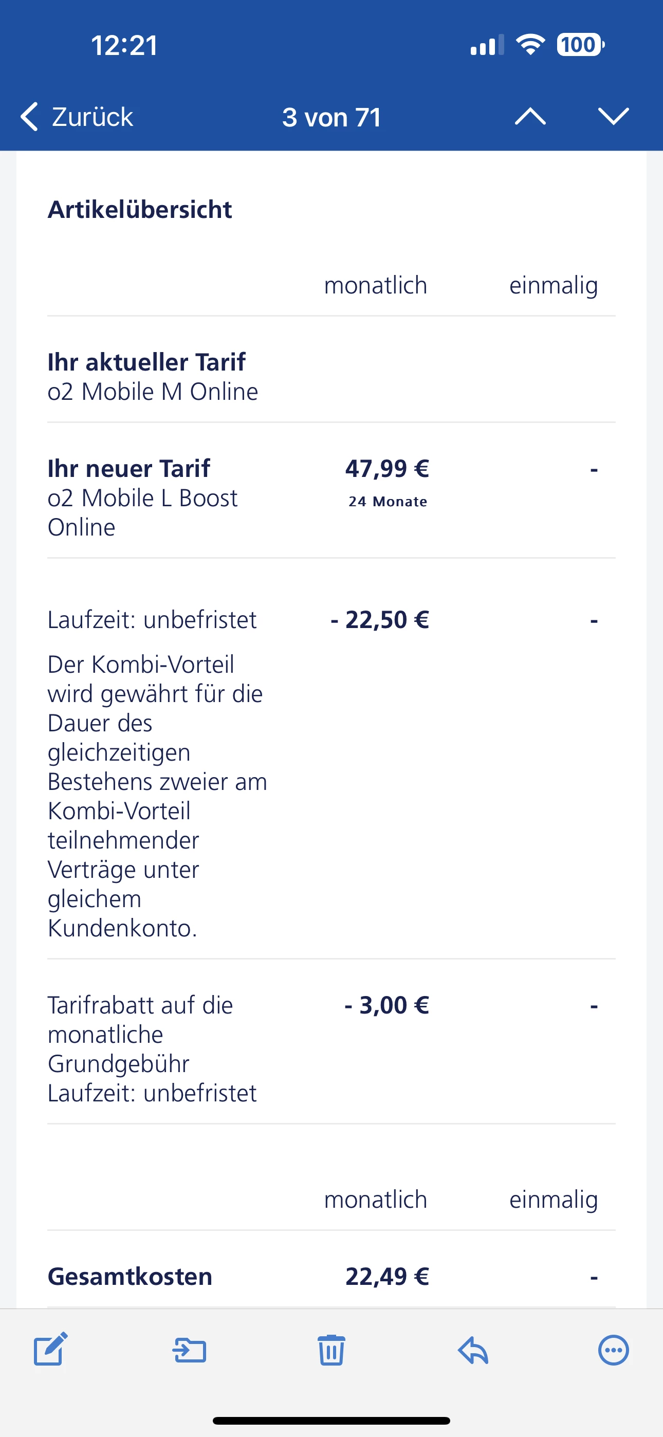 Gestern hab ich dann einen Vertrag schon nach einem Jahr Laufzeit verlängert und im Bild stehen die Konditionen.