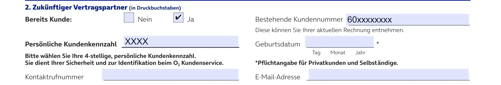 Meine Freundin hat gerade noch einmal ihre E-Mails überprüft und festgestellt, dass sie eine weitere E-Mail von O2 erhalten hat und ihr eine neue Kundennummer für diese bestimmte SIM-Karte zugewiesen wurde. Aber ich kann das passieren, wir hatten das Formular korrekt mit ihrer alten (ursprünglichen) Kundennummer ausgefüllt. Jetzt hat sie 2 Kundennummern und für 2 verschiedene SIM-Karten und sie hat den Kombinationsvorteil verloren. sehr traurige Situation.