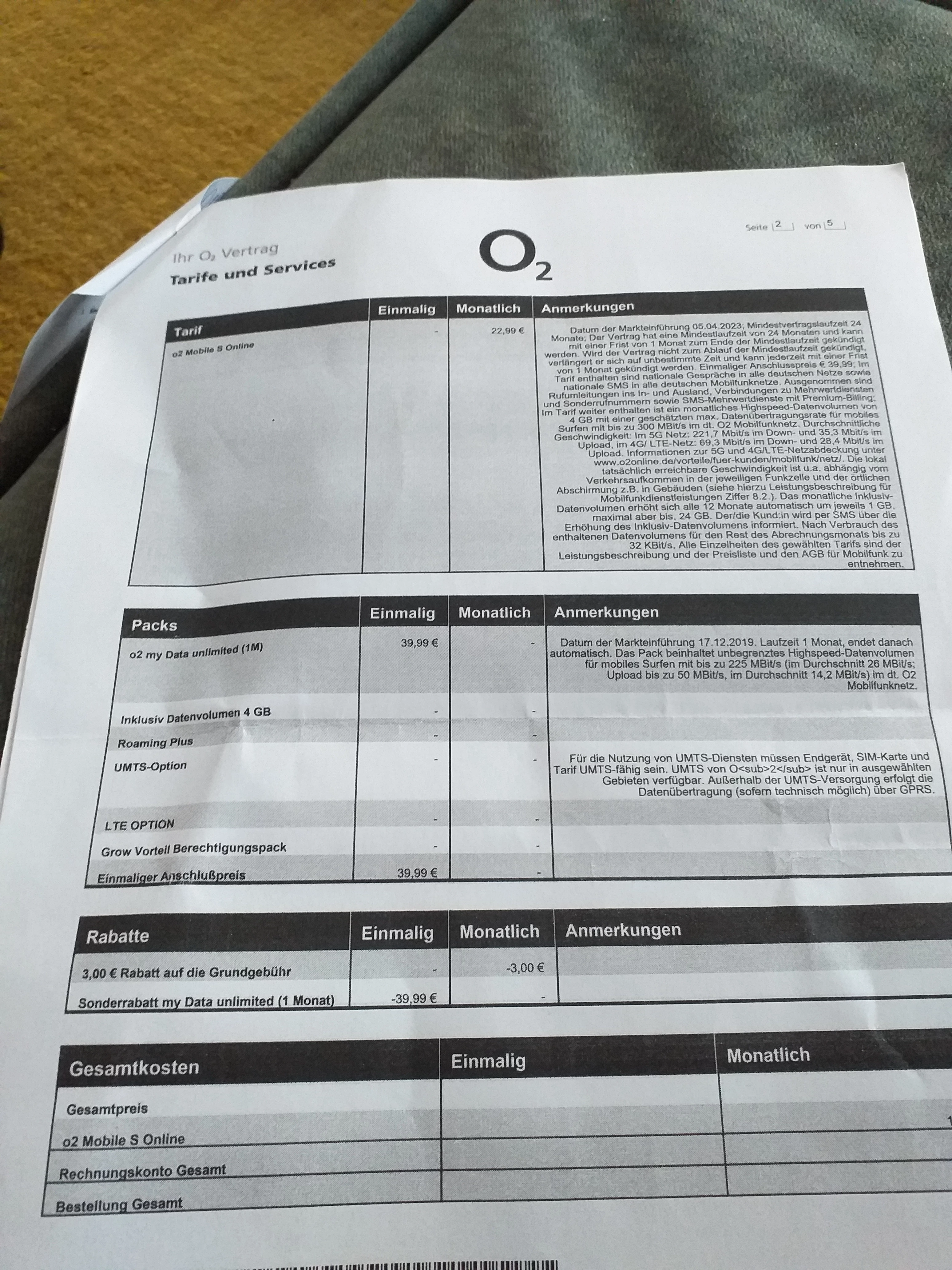 Die Grundgebühr wurde mir auch berechnet, da der gewiefte Mitarbeiter einfach noch einen Datentarif für 39.95 mit abgeschlossen hat, welcher direkt auch wieder gutgeschrieben wurde. Das ist mir bei Abschluss natürlich nicht aufgefallen, da es sich um den gleichen Betrag wie den Grundpreis handelt. War dumm von mir.