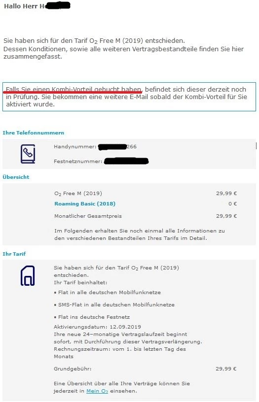 In der Bestätigungsmail steht das dieser Kombi-Vorteil noch in Prüfung ist.