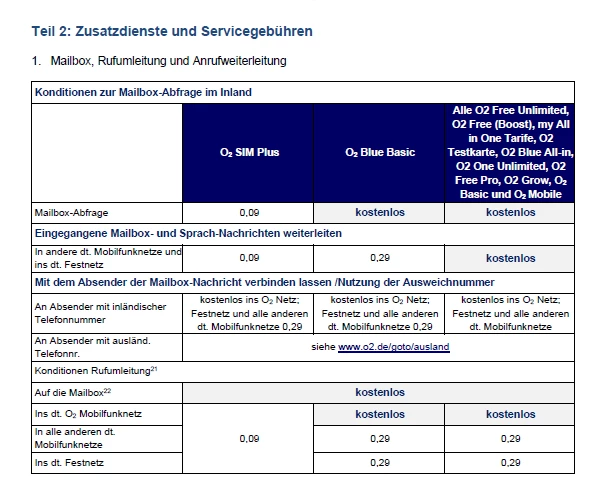 Was kostet die Mailbox abfrage im O2 Mobile L boost Tarif?