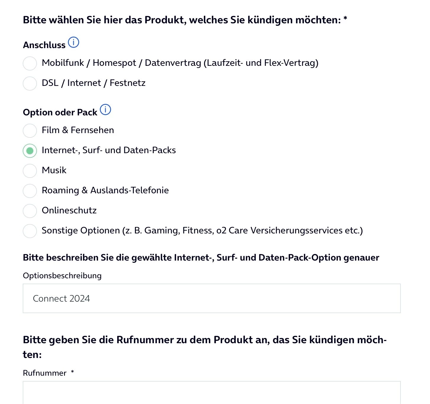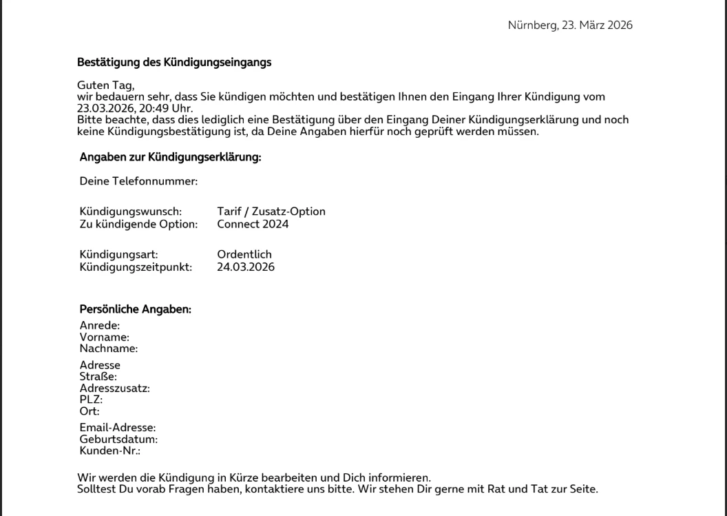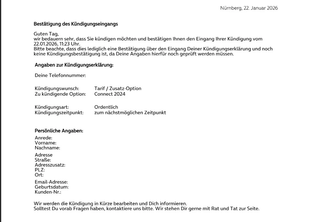ich habe am 22.01. bereits eine Anfrage gestellt, um die Tarifoption „Connect 2024“ zu kündigen.