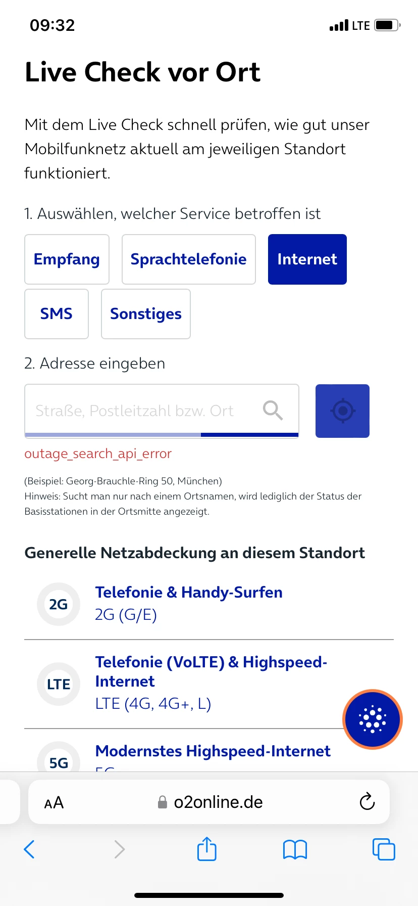 Auf dem Screenshot, wo du den Live-Check nutzt, scheint keine Adresse genutzt worden zu sein, wie hier auch von anderen geschrieben wurde. So kann dann leider auch nichts gemeldet werden. Wann hast du zuletzt eine Störungsmeldung aufgenommen und welche Rückmeldung hast du daraufhin erhalten?