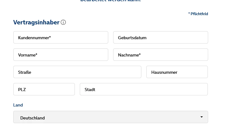 3. Rufnummer würde ich ja gerne eingeben, aber per E-Mail, als ich den Vertrag abgeschlossen habe, habe ich nur eine zensierte Version der Rufnummer erhalten (Bsp.: 07XXXXX123), so dass ich die Rufnummer nicht mal wissen könnte.