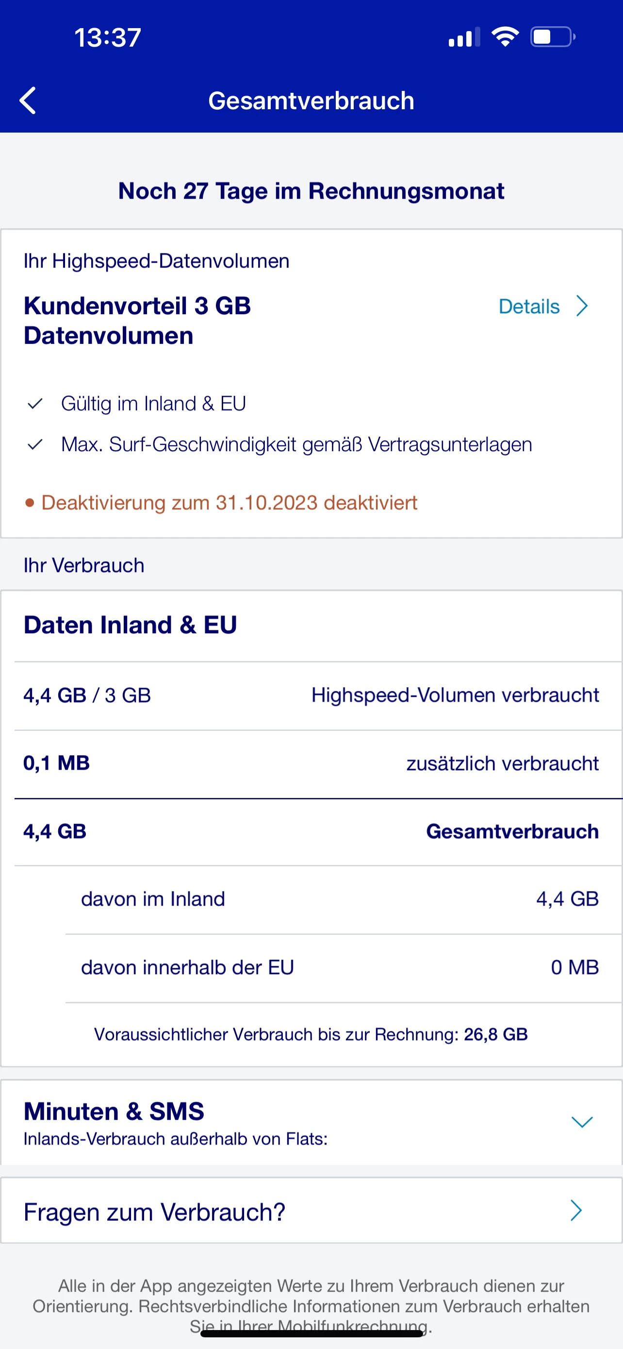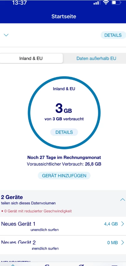 Kundenvorteil Premission, nur noch 3GB Datenvolumen verfügbar