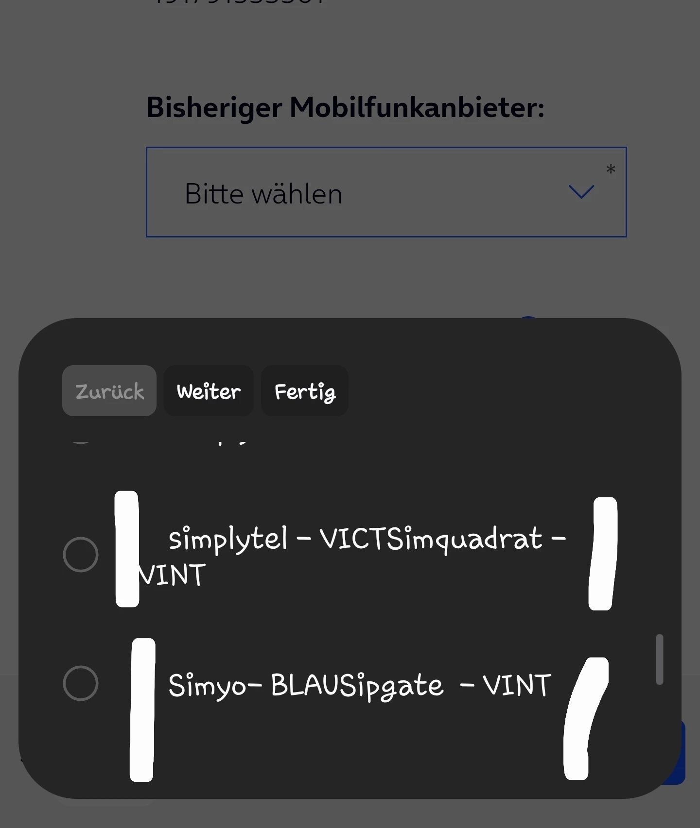 Liste der anzugebenden Anbieter bei Portierung hat sich ein Fehler eingeschlichen