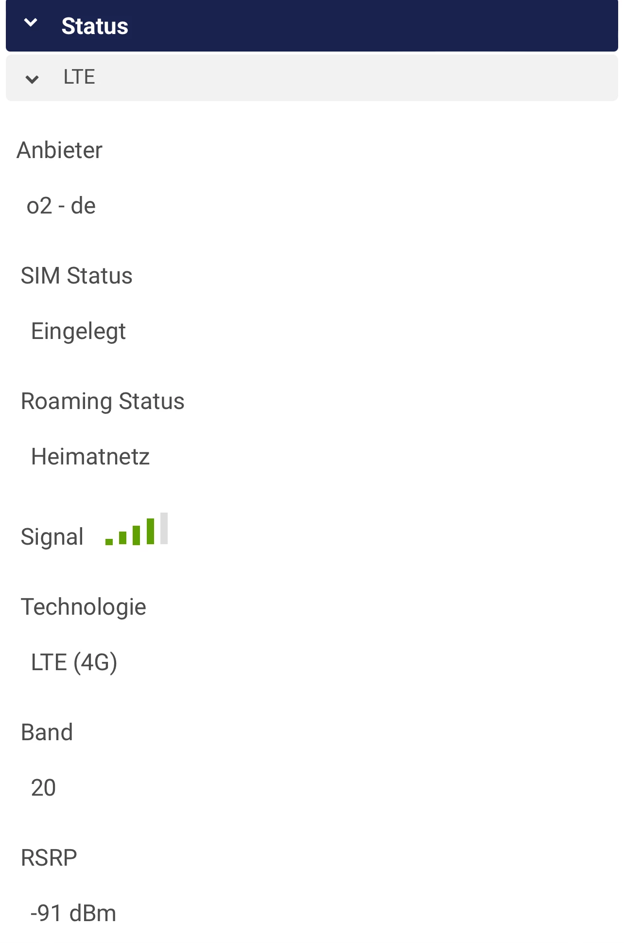 • Menü → LTE/3G Modus → Konnektivität → Mobilfunk Einstellungen → PIN