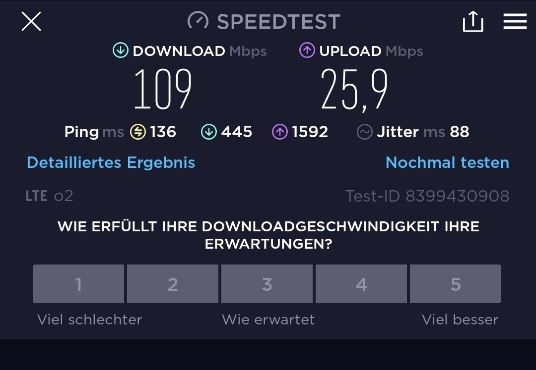 Ich habe sicherheitshalber mit 2 verschiedenen programme speedtest machen lassen