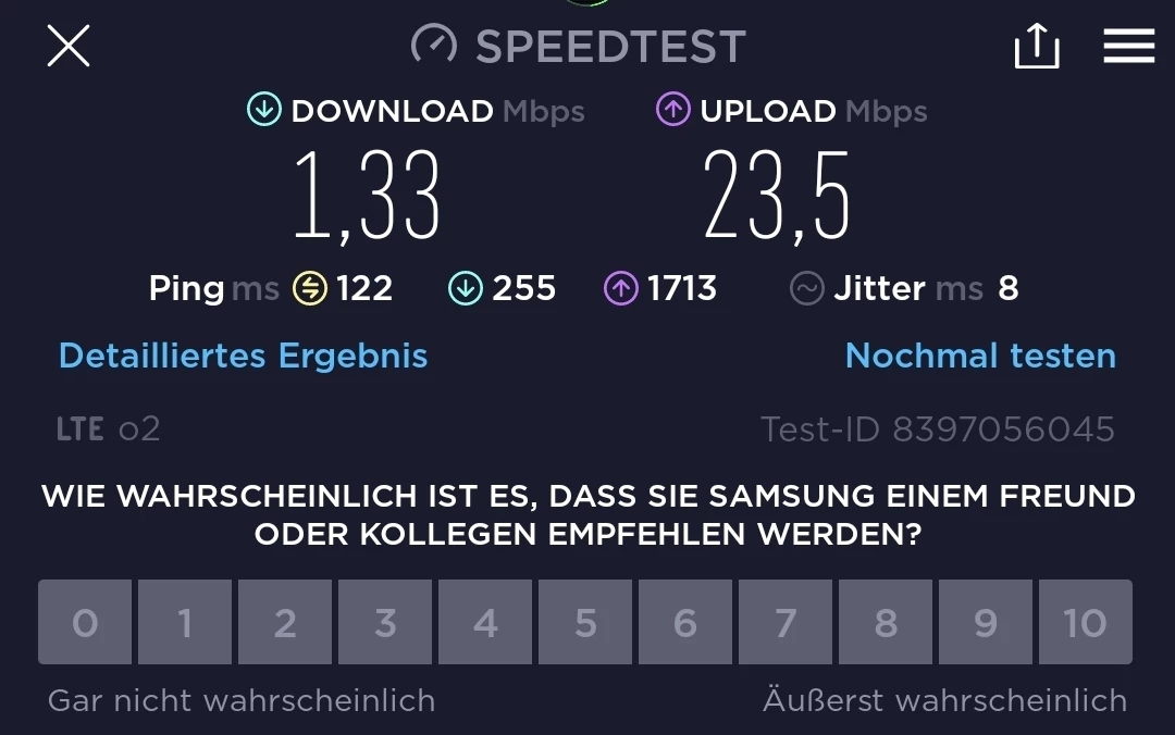 Dann über https://www.speedtest.net/de einen Speedtest durchführen.