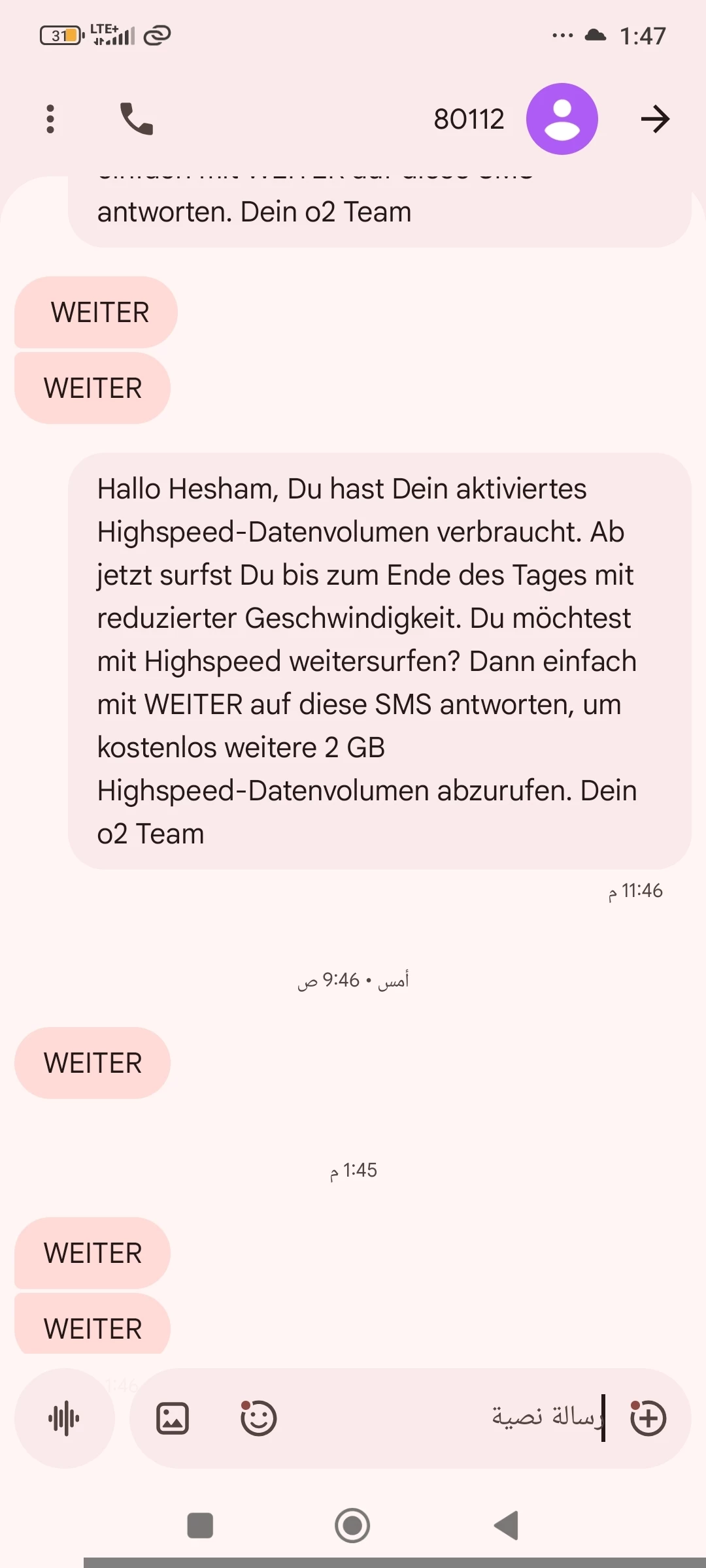 SMS an 80112: Ich sende das Wort "Weiter", erhalte aber keinerlei Rückmeldung vom System.