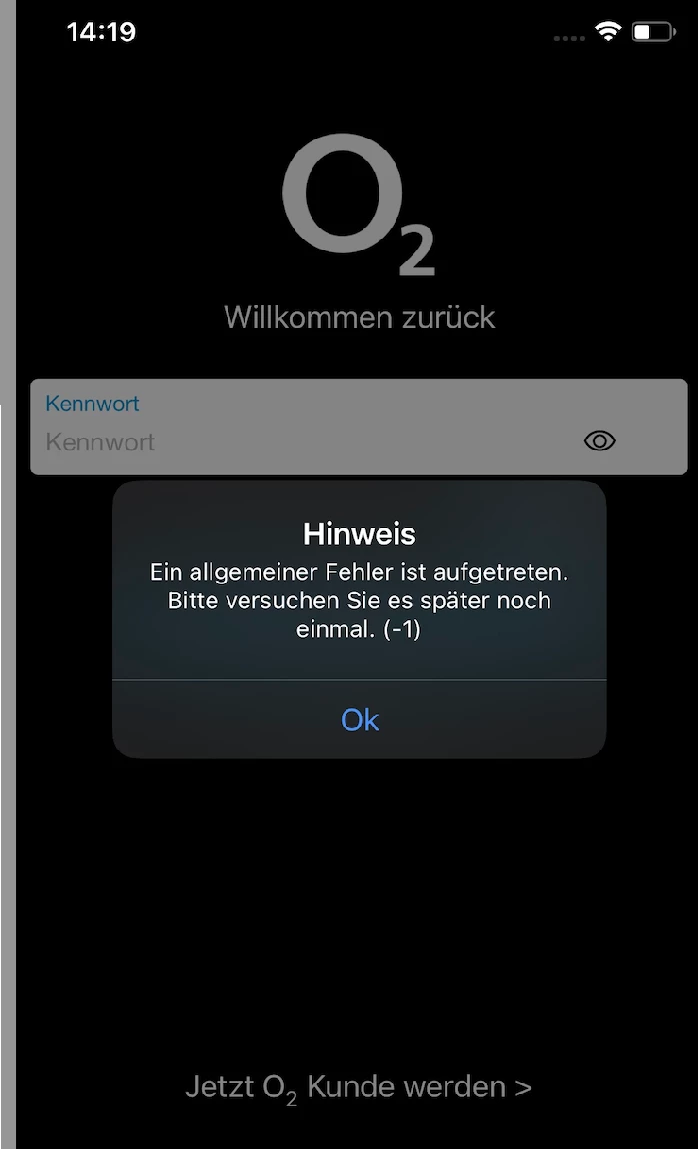 Mein o2 App LogIn fehlgeschlagen