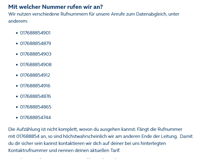 Diese Rufnummer ist von uns, wir nutzen sie aktuell um Wechselangebote in Tarife mit mehr Inklusivleistungen anzubieten. Deine Rufnummer mit der du hier eingeloggt bist wurde für diese Bestandskampagne ausgewählt und angeboten werden sollte der Free L oder Free L Boost, ganz nach deinen Wünschen.