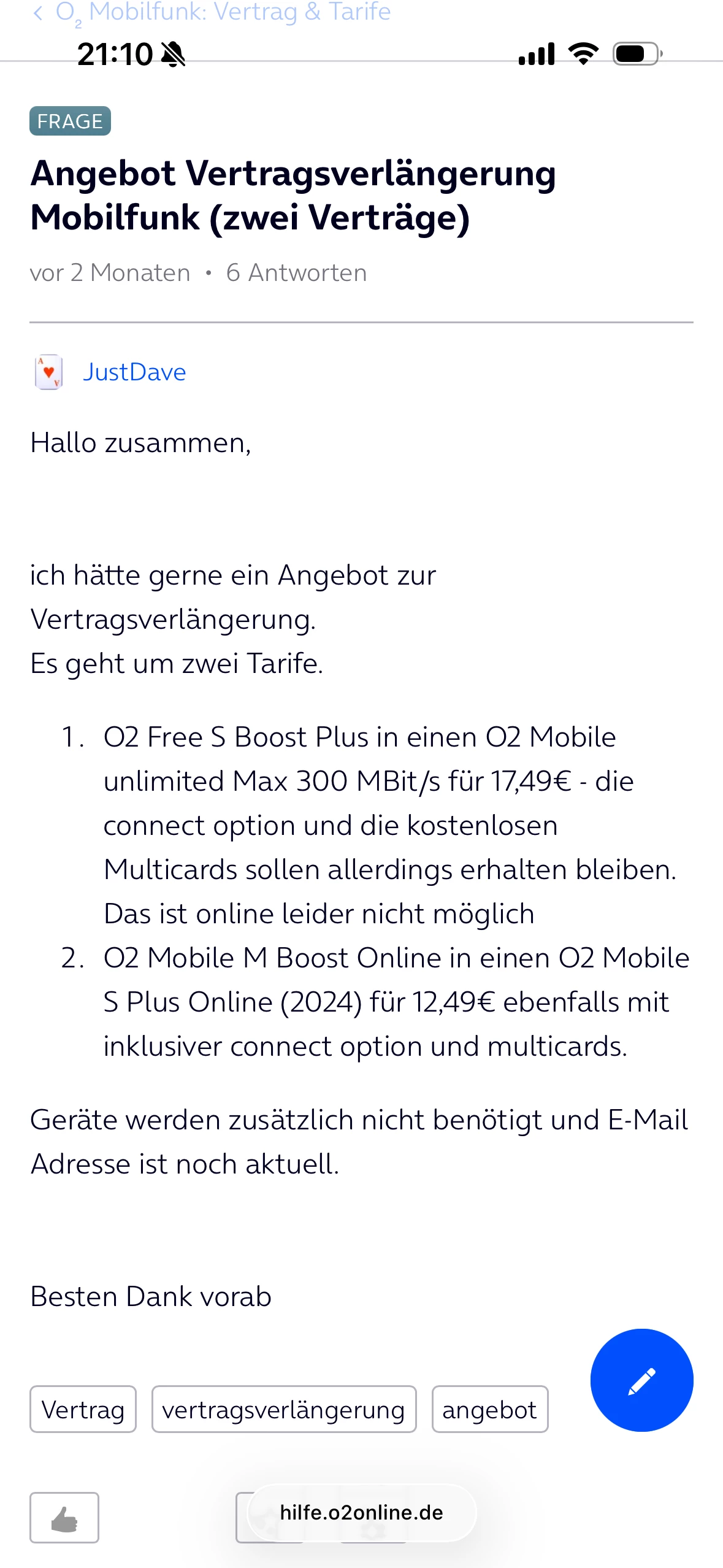 Hier noch die Auflösung dazu, nix ist passiert Angebot Vertragsverlängerung Mobilfunk (zwei Verträge) | O₂ Community