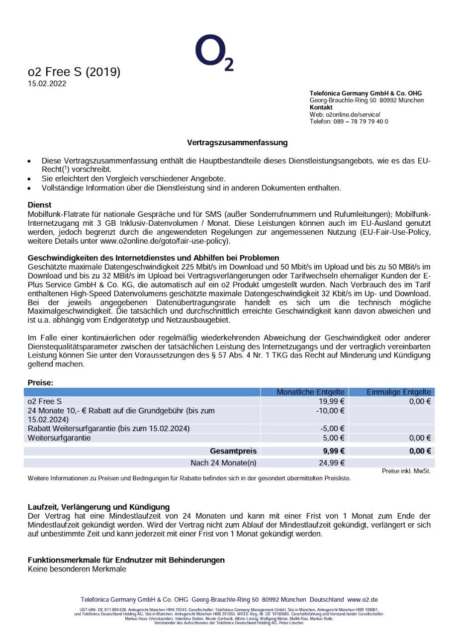 Auf dem Blatt für O2 Free S (ohne 2018) steht Vermarktung seit 04.02.2020