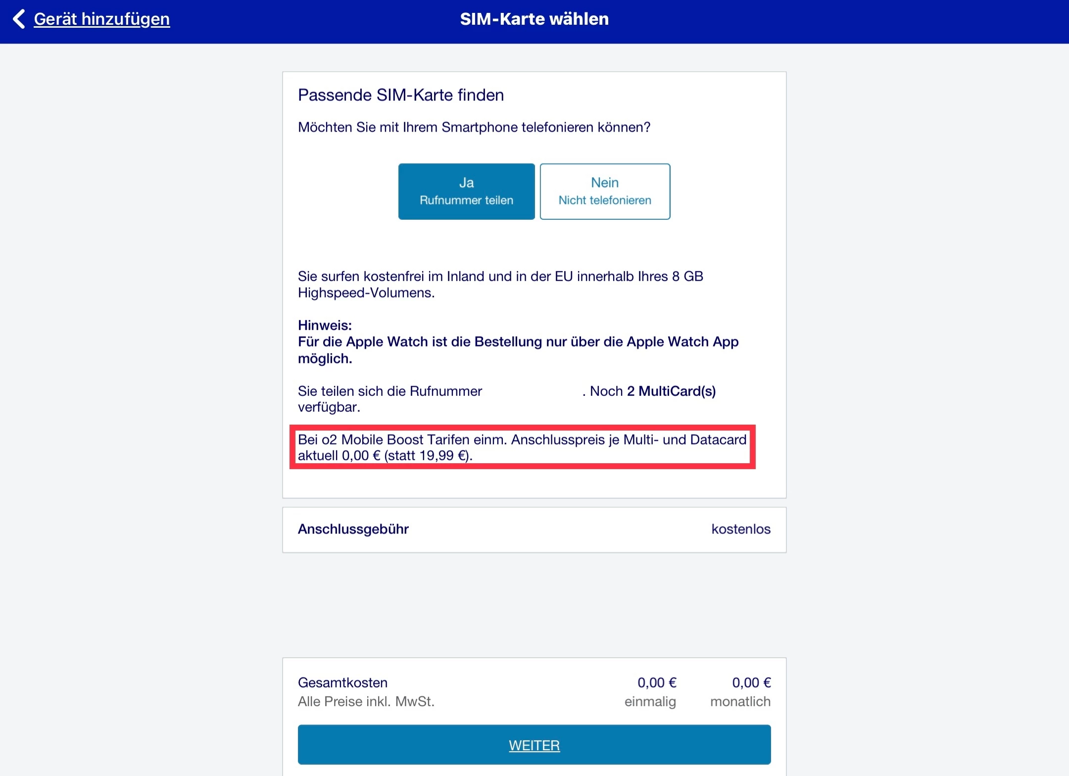 ich habe aktuell einen O2 Free L Boost Tarif mit 120GB. In dem Tarif kann ich bis zu 10 zusätzliche Simkarten nutzen. Aktuell nutze ich ca. 5 Karten. Die Bestellung und die Nutzung war kostenfrei. Nun wollte ich in den O2 Mobile L Boost wechseln und wollte fragen was mit den zusätzlichen Karten passiert? In diesem Tarif kostet die zusätzliche Karte einmalig 19,99 EUR und die Nutzung ist kostenfrei (keine Gebühren monatlich). Werden die bereits genutzten Simkarten deaktiviert und ich muss jeweils für 19,99 Euro wieder neue bestellen oder wie ist das dann?