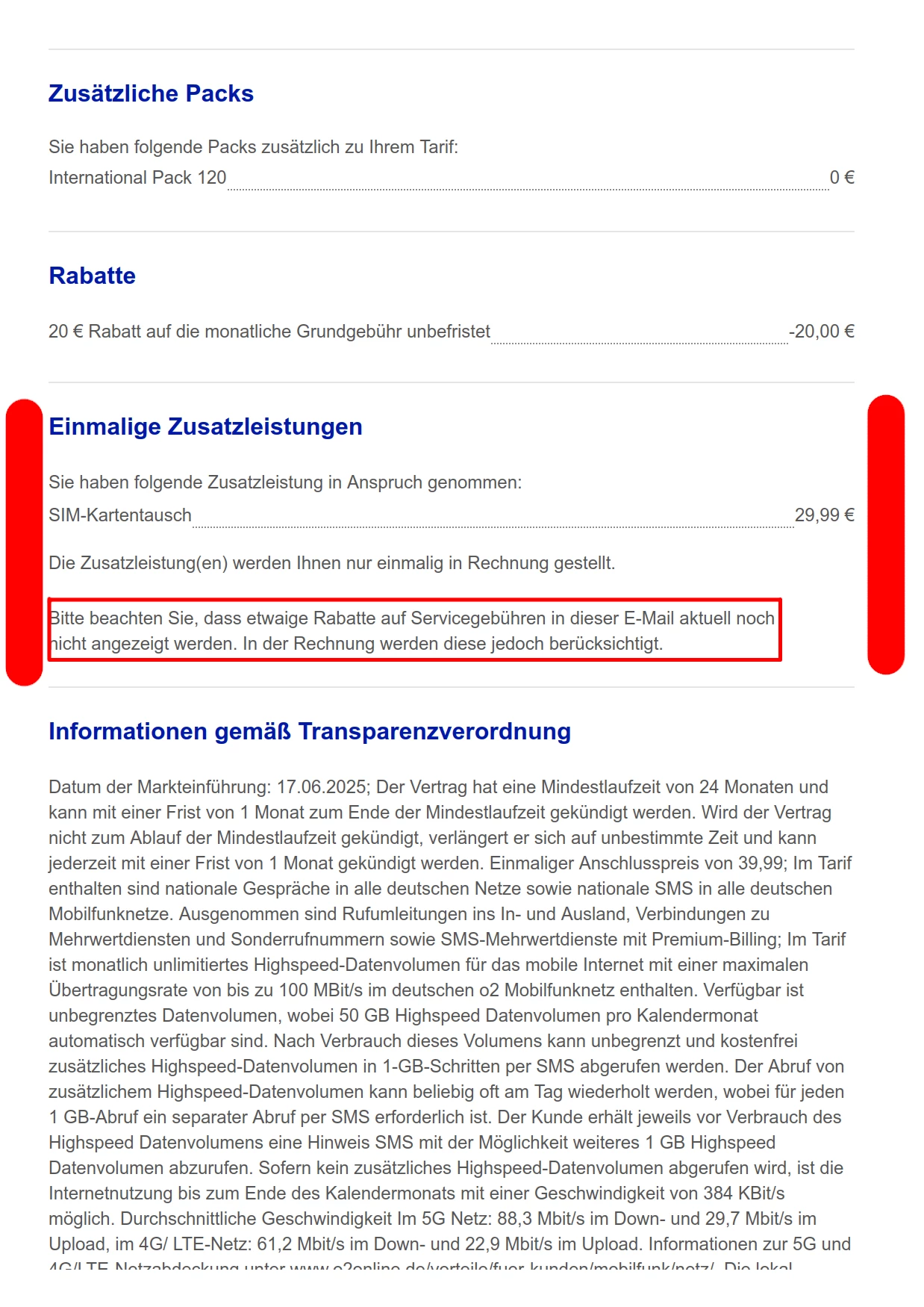 Vor ein paar Monaten habe ich diesen bei einem Händler verlängert in einen O2 Mobile Pro Unl. OD Light 2025. Er hatte mir gesagt, dass er sich darum kümmert, dass ich die Multicards kostenlos behalten kann. Wie ich Ende letzten Jahres gesehen habe, hat das nicht geklappt. Ich habe dann noch einmal mit diesem Händler gesprochen, er wollte sich noch einmal darum kümmern (Ticket-Nr. im internen System XXXXXX). Hat wohl auch nicht geklappt, darauf hin hat er mir zugesagt, dass er die Vertragsverlängerung rückabwickeln kann. Das klappt aber auch nicht, zumindest meldet er sich nicht mehr bei mir.