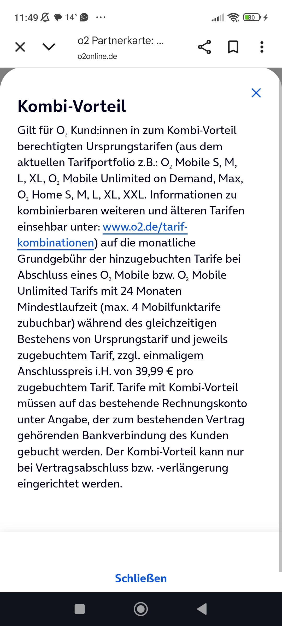 Dein Screenshot zeigt in der Tat die Tarifbedingungen für eine Partnerkarte, du hattest aber lediglich einen einzigen Vertrag bestellt. In diesem Fall kann ein Partner-Rabatt nicht gewährt werden.