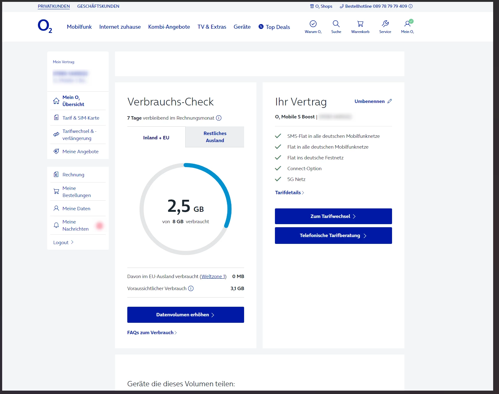 Siehst du Informationen zum Handyvertrag unter mein o2?