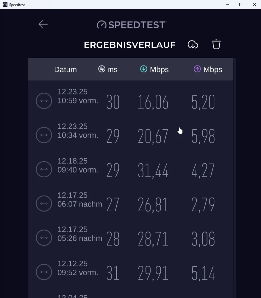ich nutze das 4g netz mit nem wittenberg duo antenne, da ist der empfang zum kürzensten funkturm bei mir 75% stabil, leider ist aber da ein kleiner hügel im weg stört aber nicht, weil ich vorher wie man sieht bei den bildern, wie gesagt, 60mbit+ hatte. Das ist erst mit dem vertragswechsel so “beschissen” geworden als hätte jemand schlalter umgelegt. 5g router ist in planung aber dazu brauch ich ebenfals eine neue antenne die jetztig antenne macht nur 4g LTE. das geld für 5g zeug hab ich eben mal nicht schnell in der schwarzgeld kasse. die screenshots sind alle mit 75% empfang gewesen. am emmpfang liegt es definitive nicht. der fehler ist halt wo anders zu suchen und zwar bei der vertragsänderung bzww freischaltung wurde mit ziemlicher sicherheit murks gemacht. ich hatte vorher die große flat und hab nur “verlänger” und als dank gedrosselte geschwindigkeit bekommen. der witz dabei ist, sobald ich anderen sektor unterwegs bin, zum beispiel bereich nossen, hab ich wieder fullspeed auf handy nütz mir aber nicht viel weil rechner router und antenne gebiet lommatzsch stehen und da sieht man das ergebnis wie oben.
