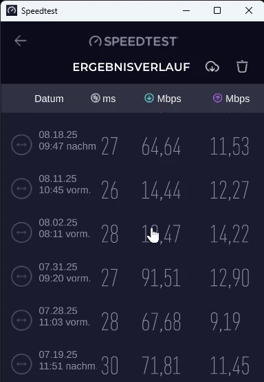 Magst du einmal bitte berichten, wie es aktuell mit deiner Bandbreite aussieht? Hat sich da etwas verbessert?