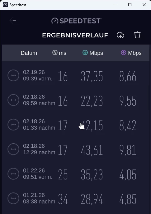 o2 hat im November 2025 vielerorts im LTE Band 1 auf 2100 MHz das genutzte Frequenzspektrum von 20 MHz auf 10 MHz reduziert. Das Datum mit dem 17.11.2025 passt da sehr gut, seit diesem Zeitpunkt ist das Netz bei uns auch Hoffnungslos überlastet, da sind Deine Werte wirklich noch gut. Grund ist, dass o2 10MHz Frequenzspektrum zum Jahreswechsel abgeben musste, weil man Sie in der letzten Frequenzaktion nicht ersteigern konnte. Leider hat man die Zeit nicht genutzt das Netz mit anderen Frequenzen auszustatten.