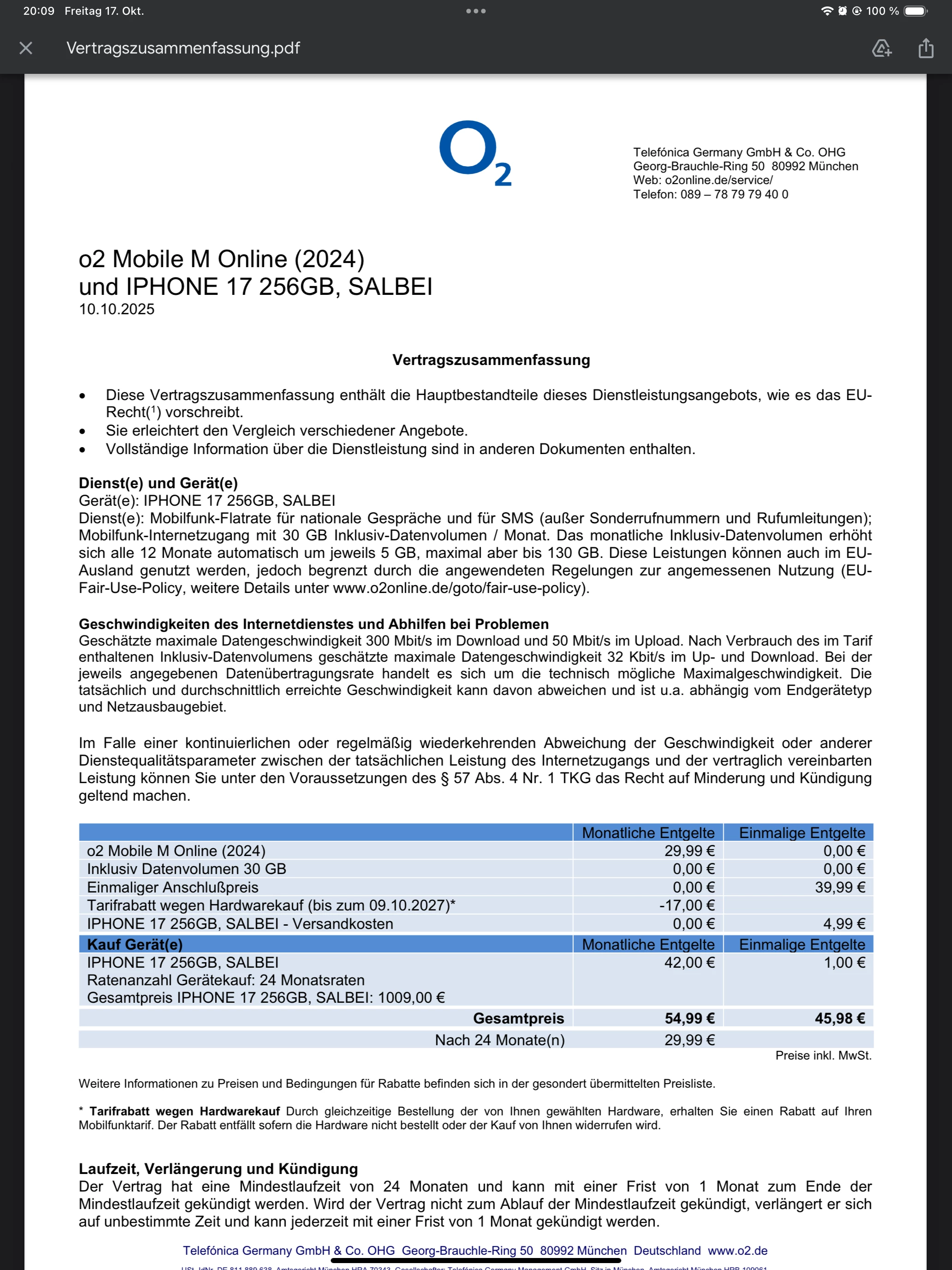 Hallo, ich habe vor zwei Wochen eine Bestellung für ein iPhone 17 gemacht. Ich habe nur die Vertragszusammenfassung erhalten, aber noch keine Versandbestätigung. Können Sie bitte prüfen, ob der Vertrag genehmigt wurde?