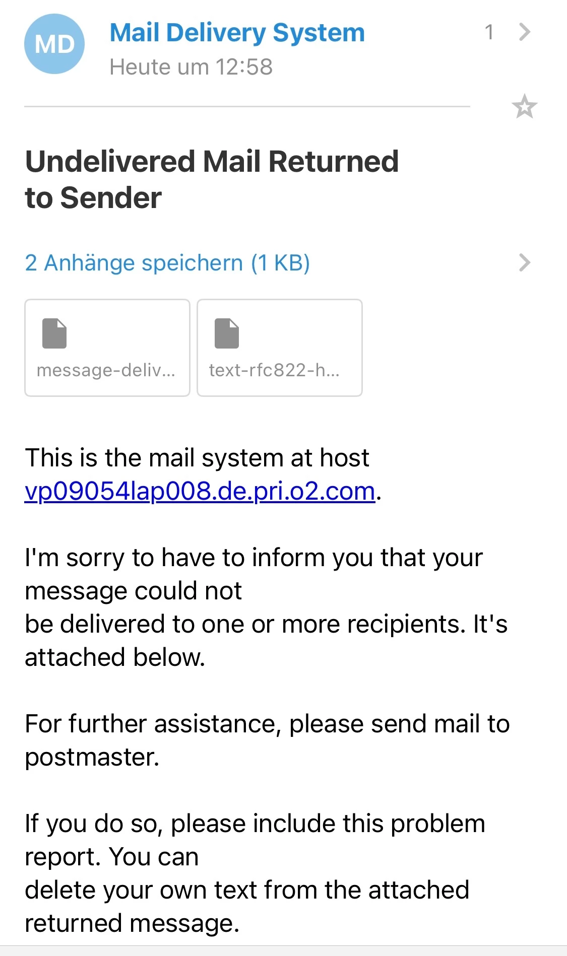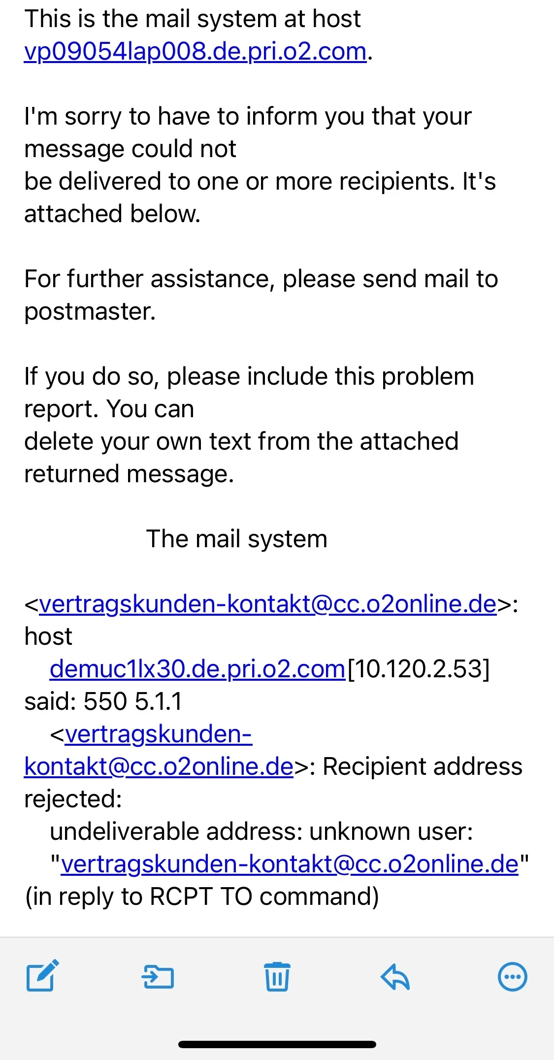 Also die Mailadresse dahinter existiert. Ich habe es gerade probiert und habe eine Eingangsbestätigung bekommen. Auch steht in der Mail nicht das die Mailadresse nicht existiert.