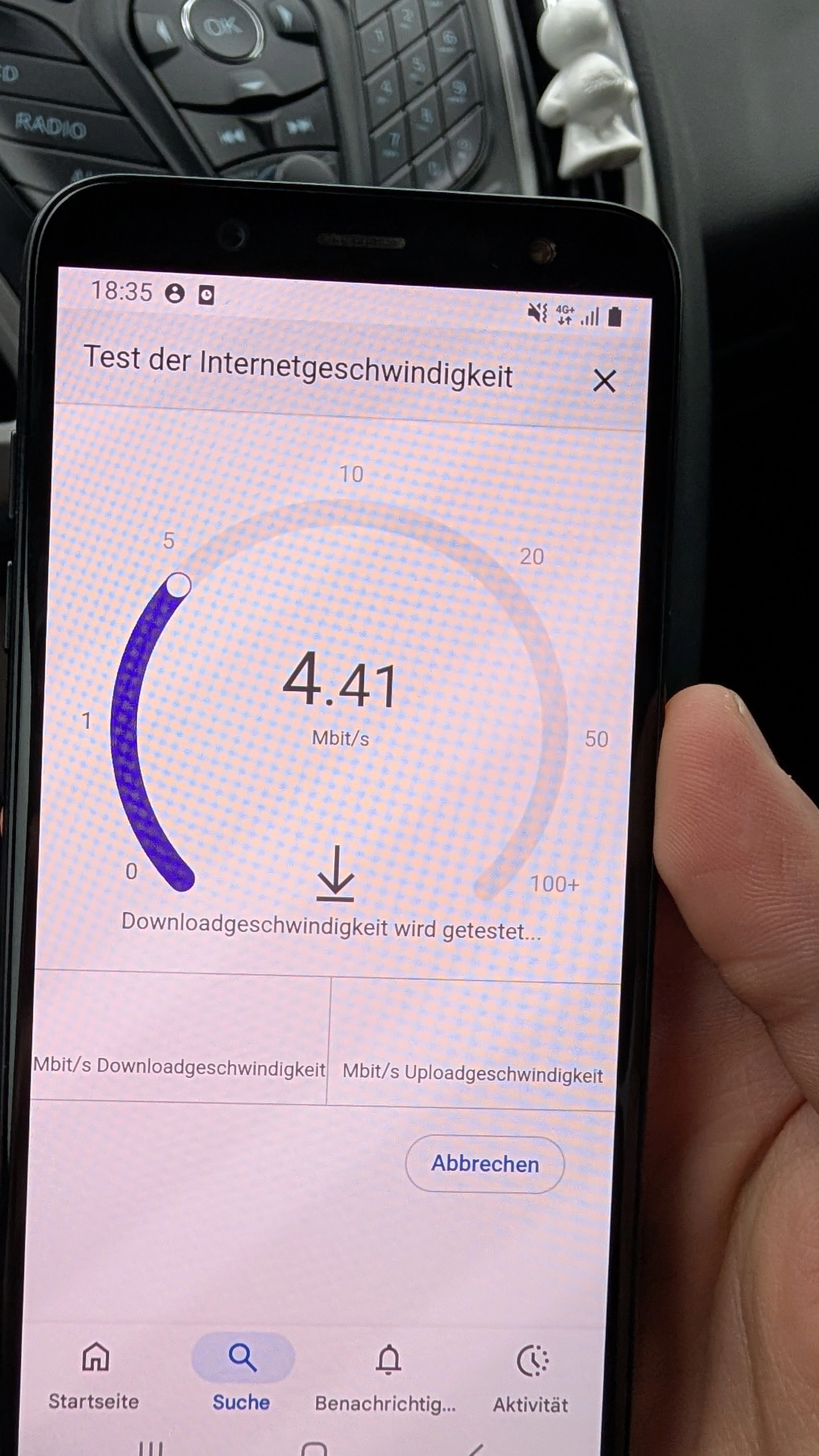 Ich musste gerade in eine großstadt fahren und habe direkt neben einem o2 sendemast mitten in der großstadt ein Speedtest gemacht. Das kann doch nicht sein, dass man solche Ergebnisse erzielt… Was kann ich da tun?