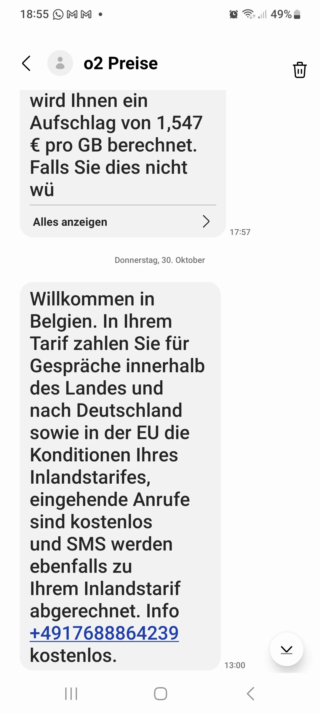Schau hier. Alte Nachricht mit Kostenhinweis. Neue am 30. war ich wohl auch schon im Netz eingewählt, gibt es dazu keinen Hinweis mehr.