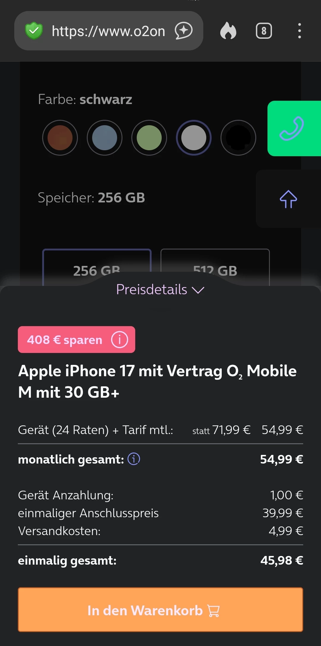 es würde sich um ein IPhone 17 256gb 24 Monate Laufzeit handeln.