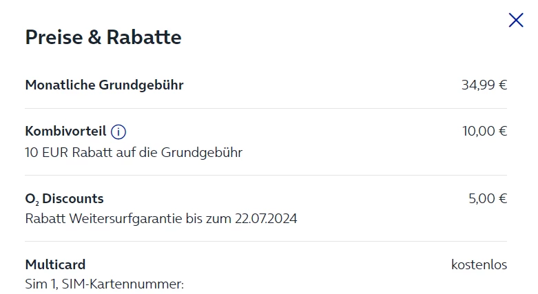Wie erwähnt und von mir dargestellt, erhältst du den Rabatt nur, wenn die Weitersurfgarantie gebucht und berechnet wurde, also +/-5€.