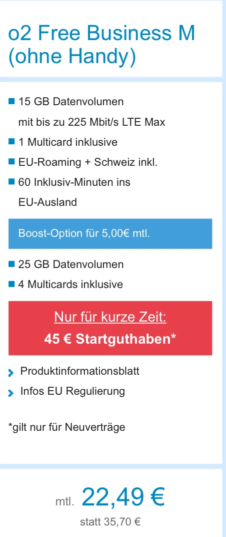 Edit: @Kanister0911 @Vilureef Ich bin fälschlicherweise vom O2 Business Blue M ausgegangen. Dort ist eine Karte inklusive und ab der 2. kostenpflichtig. Der Rest bleibt, dafür gibt es die Businesshotline/Chat/Rückruf