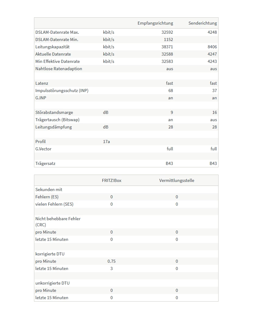 Zum DSL Anschluss kann dir vielleicht @Jogi@Joe Doe@Klaus_VoIP etwas mehr sagen. Magst du in der Zwischenzeit, schon mal die “DSL Informationen” deiner Fritzbox hier posten?