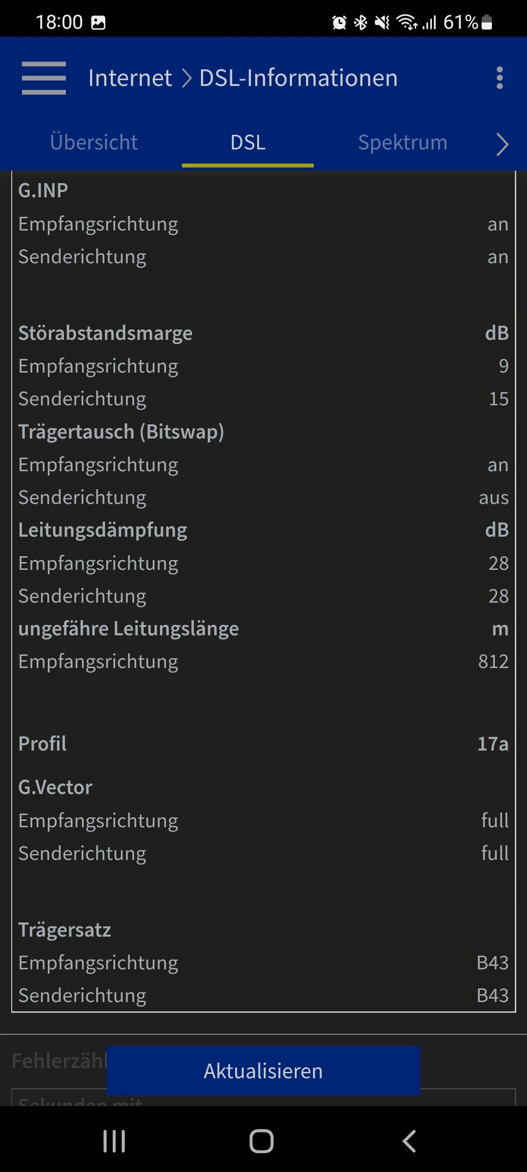 @Reldnips84 Läuft die Box auf maximale Performance unter Störsicherheit? Sicherlich ja, nur finde Sync Verhalten im Upload ominös und warum wird nicht mehr die Leitungslänge angezeigt. Wenigstens keine Fehler mehr auf der Leitung.