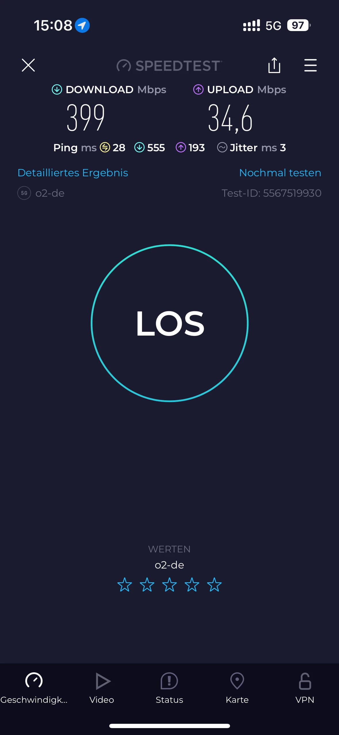 Ursache konnte ich nicht herausfinden. Die niedrige Geschwindigkeit war überall zu spüren. Irgendwie ist die Geschwindigkeit bei LTE schneller als wie bei 5G und die Geschwindigkeit schwangt ständig. Mal mehr mal weniger.