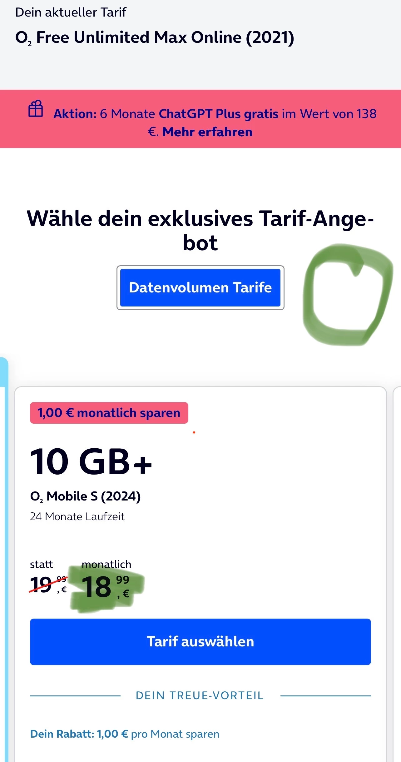 Der Tarif o2 Mobile S (2024) wird mir für 18,99€ angeboten :(.