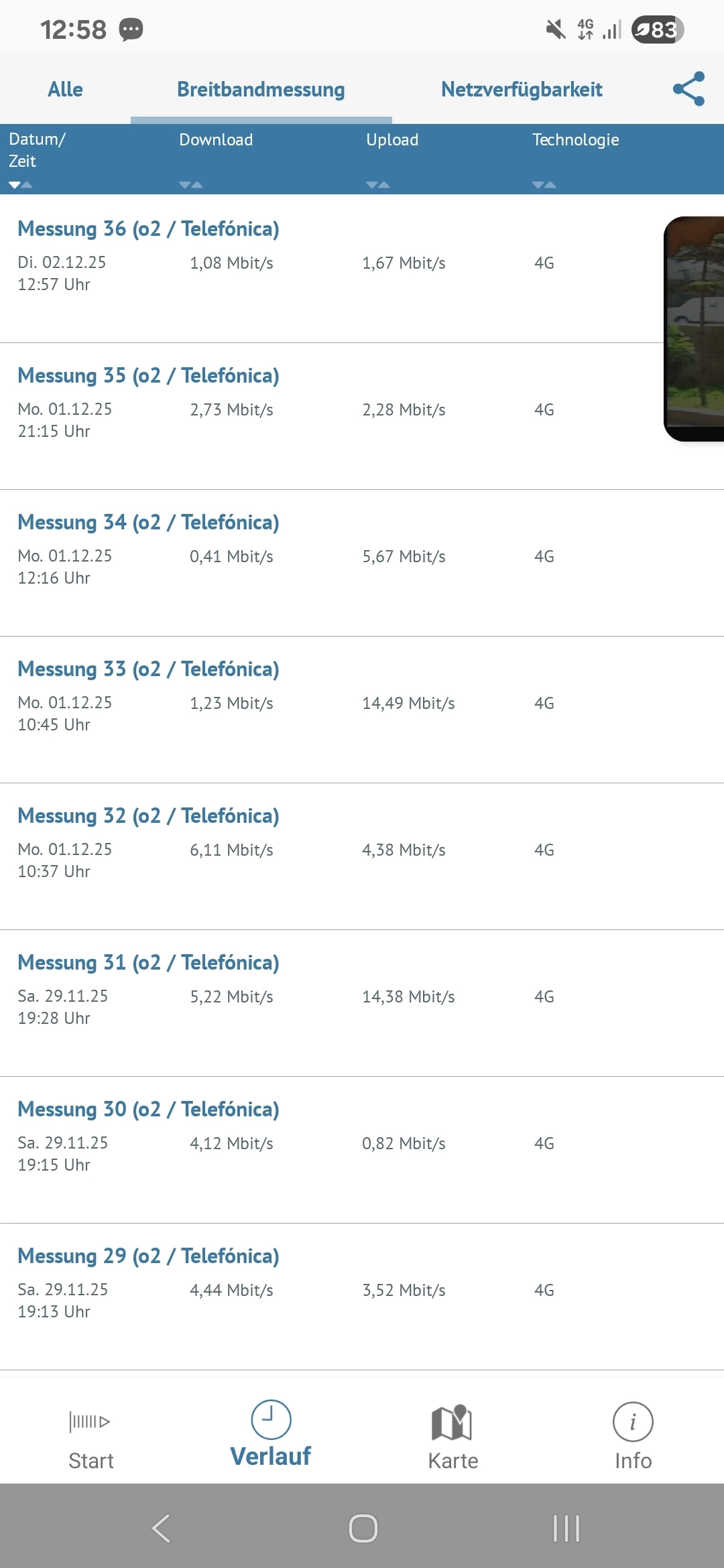 Obwohl ich drei Balken habe ist die Internet Qualität sehr schlecht siehe die Messungen