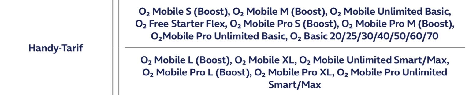 Welche anderen Mobilfunktarife berechtigen zu 10EUR Kombivorteil beim O2 myHome L (2020)?