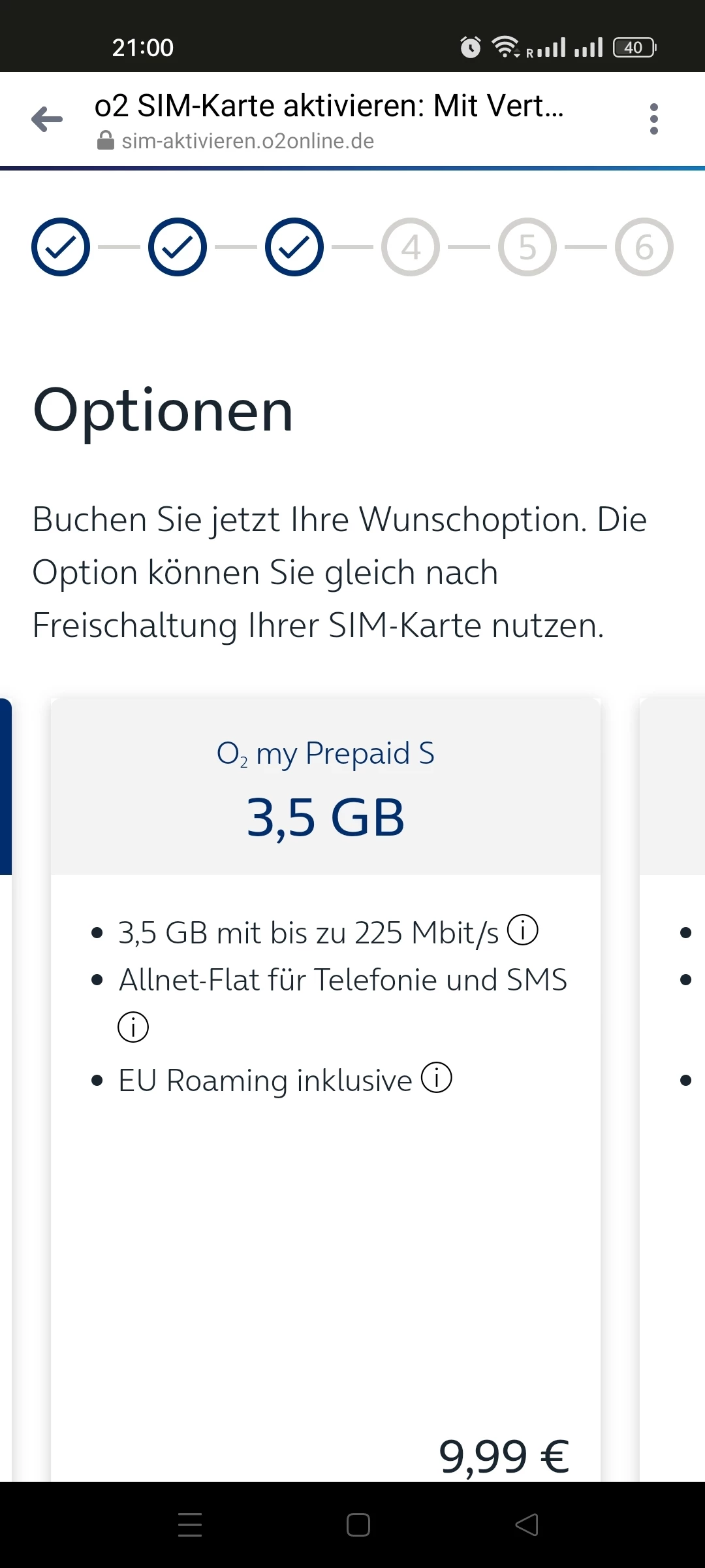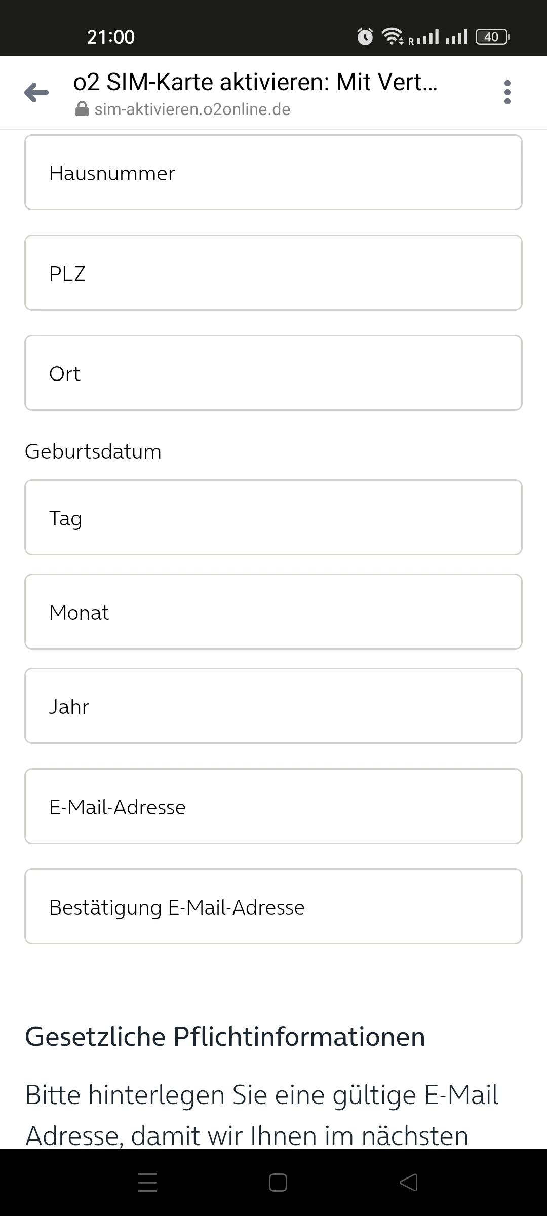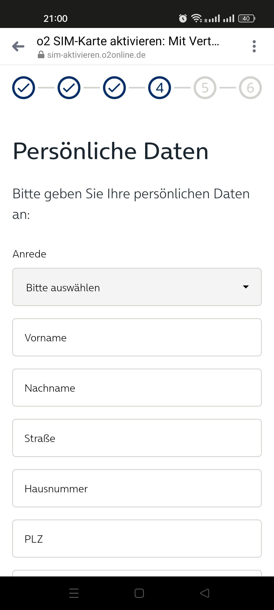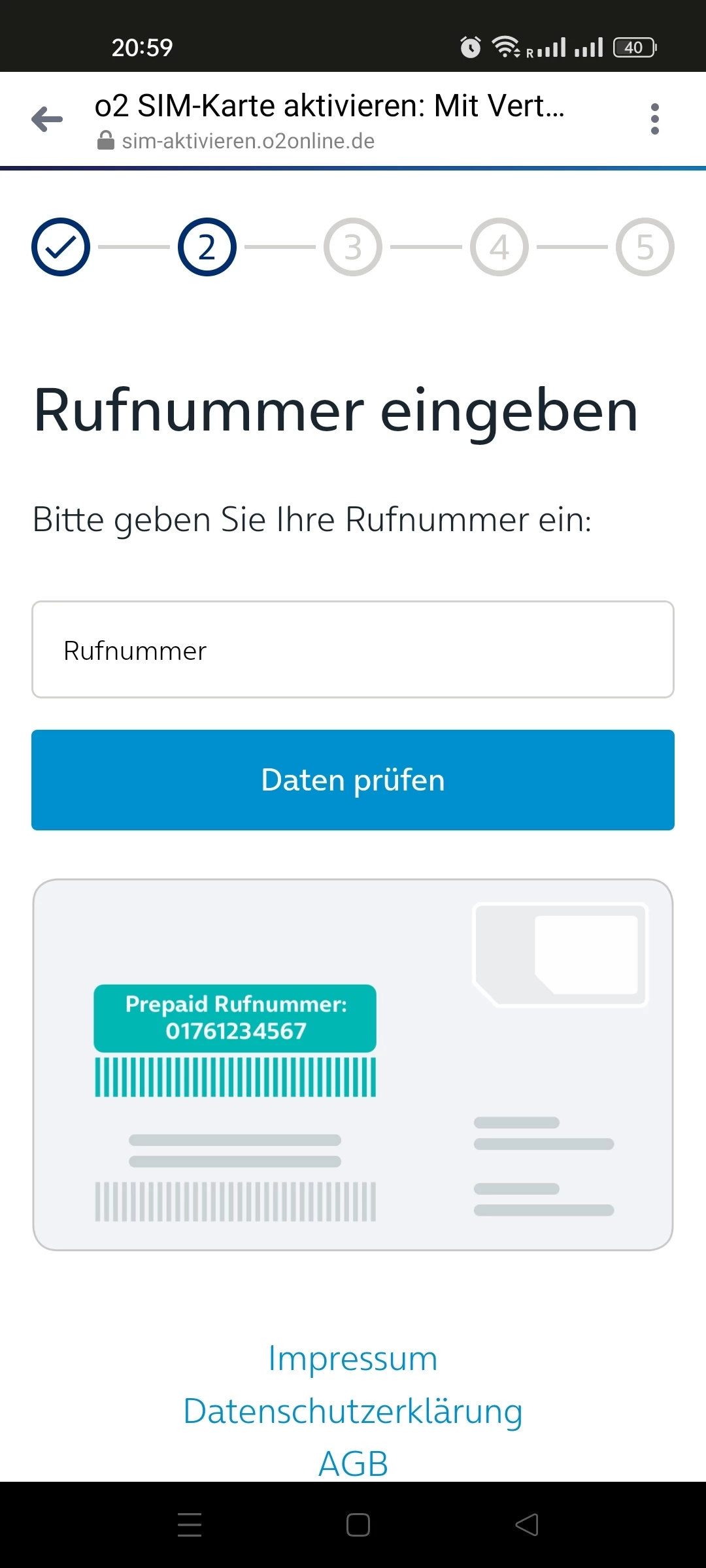 Ich gebe die SIM-Kartennummer ein, dann gebe ich die Telefonnummer ein und wähle dann den Tarif aus. Anschließend muss ich noch meine persönlichen Daten eingeben, die ich für die Registrierung per PostID benötige, komme aber nicht zum nächsten Schritt, da das System eine Kundennummer von mir verlangt, die ich nicht habe.