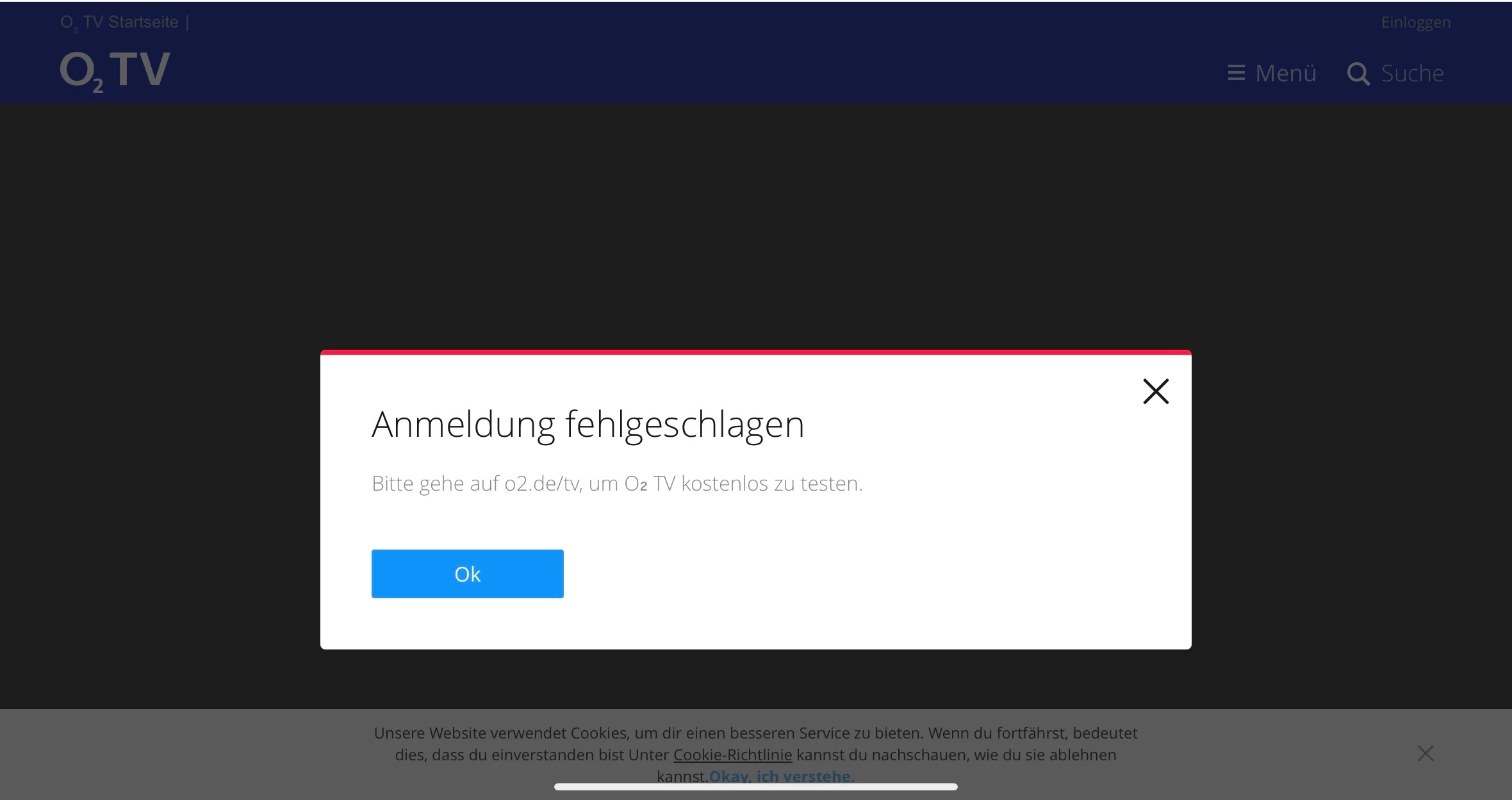 o2 TV Registrierung / Login fehlgeschlagen