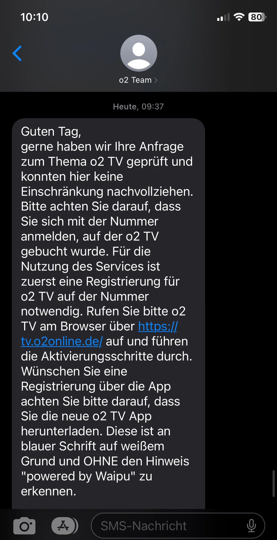> Eine o2 Nachricht bzgl. der Buchung der o2 TV Option kam an.